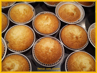 Para o pequeno-almoço, lanche, ou para o Júlio levar para a escola, estes queques são uma maravilha. Faço-os, normalmente, quando tenho que ligar o forno para um assado ou empadão. Desta vez saiu mais uma fornada deles para aproveitar ter ligado o forno para o empadão de atum.